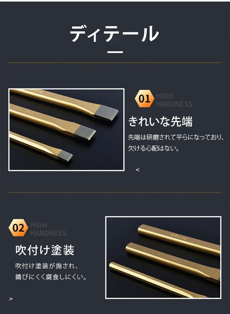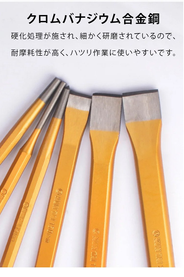 多様なサイズのタガネ工具